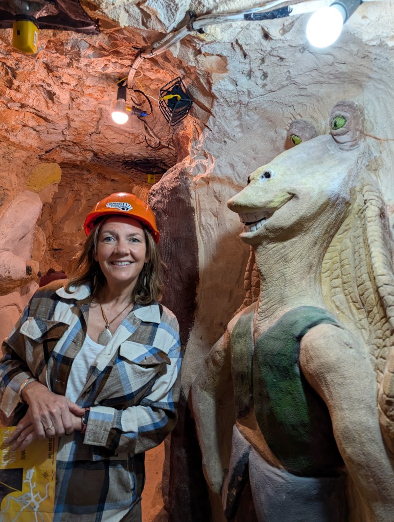 This morning before we left Lightening Ridge we did an underground mine sculpture tour. It was recommended by the so helpful Information Centre and it was a very good recommendation. On the way there we passed the mini golf. Yesterday I said you can tell a town by the Information Centre and mini golf. This proves my point. Mini golf Lightening Ridge style.