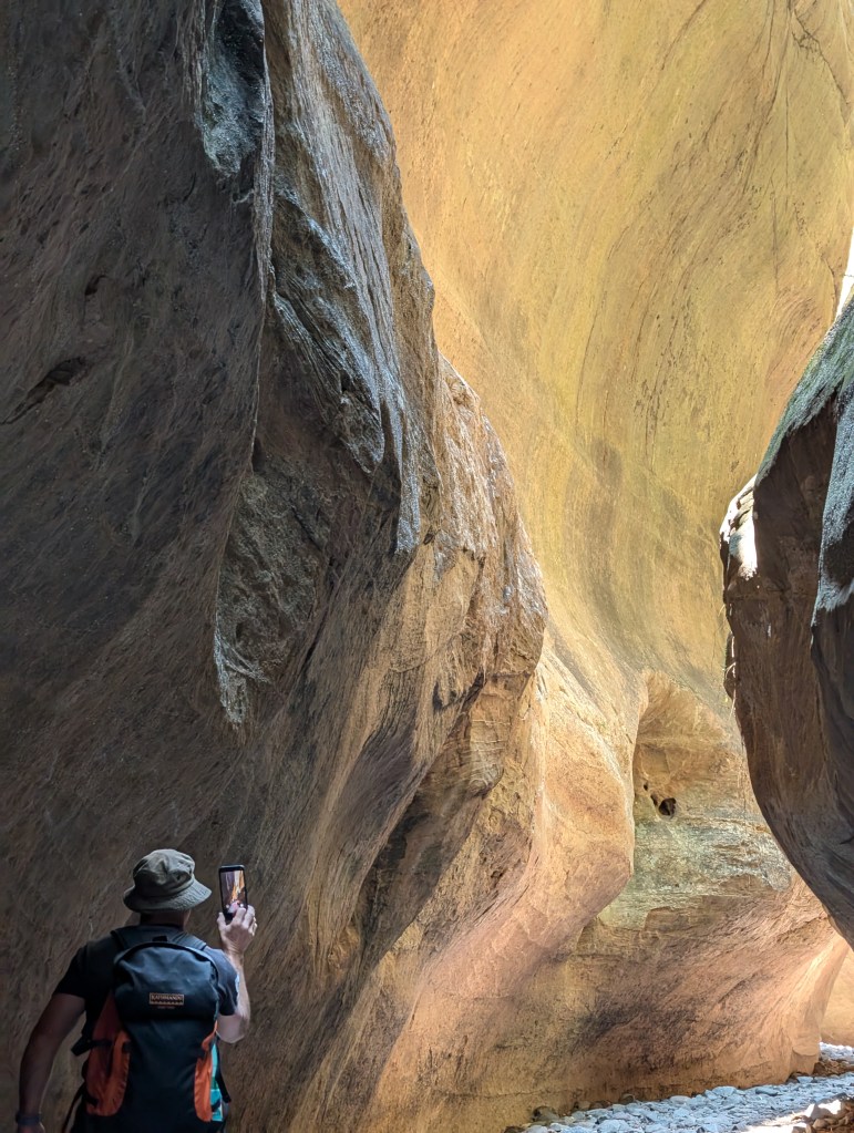 I found out after we visited this side gorge goes for 4km. Most people only go a few hundred metres (including us). It was flat but rocky. Loved the narrowness. It was one of our favourites.
