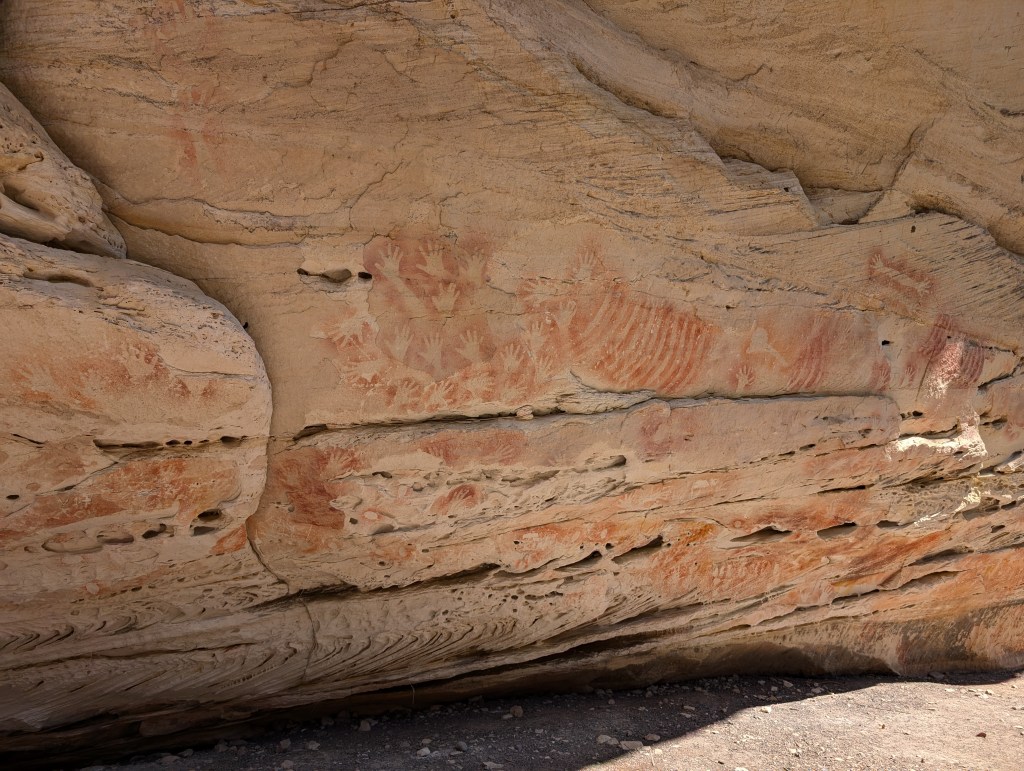 Today was our big hiking day. We headed off with anticipation to the National Park, about a 7 minute drive from where we are staying. There is a main trail (called Main Trail) which is about 20km return – a straight line to a place called Big Bend and back. Along the way there are side trails you can take of varying lengths to see different park features. We wanted to do them all one on one day to avoid doubling back on the main trail the next day. About 27km in total probably.