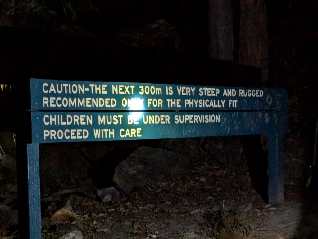 At 2.00am our alarms went off. I made thermos coffee and we took off earlier than planned. It was surreal walking along the Main Trail at that hour. The full moon was out so we didn’t need our torches for a lot of the way – lucky because the batteries were low.