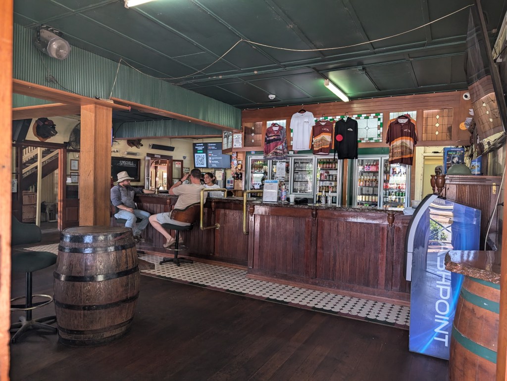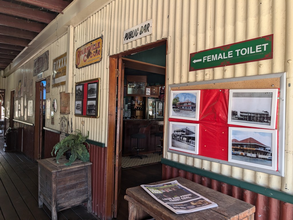 We passed quite a few towns but none had a bakery. As we drove into one town, Nebo, looking for a bakery, we fell in love with the pub. We loved it so much we went inside to have a look. Then we decided to have a drink even though it was only 11.00. Then we thought – should we change our plans and stay the night? We could watch the AFL final there.