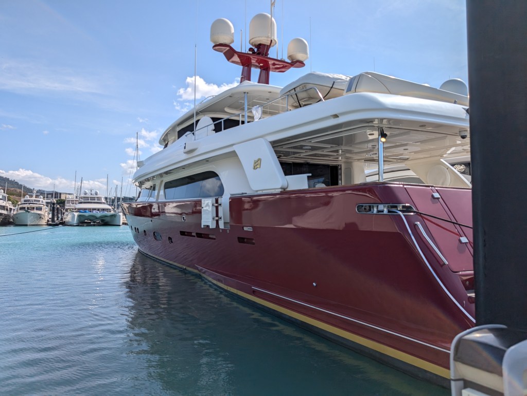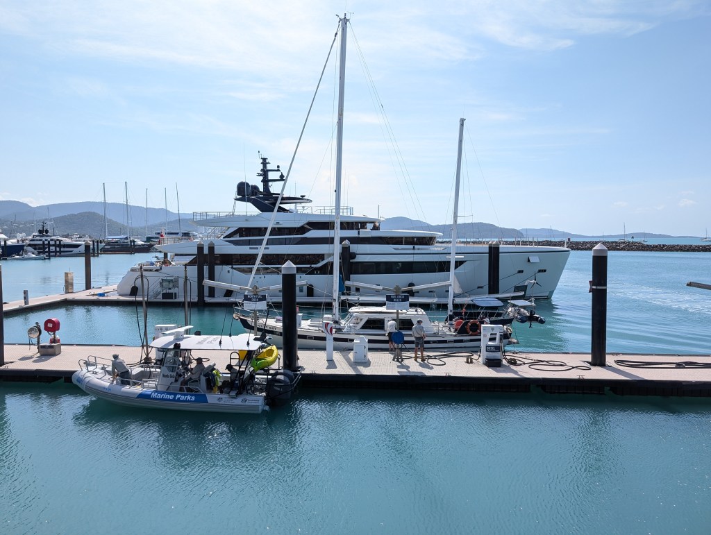 We admired the moored yachts as we walked towards our home for the next three nights – the Whitsunday Blue.