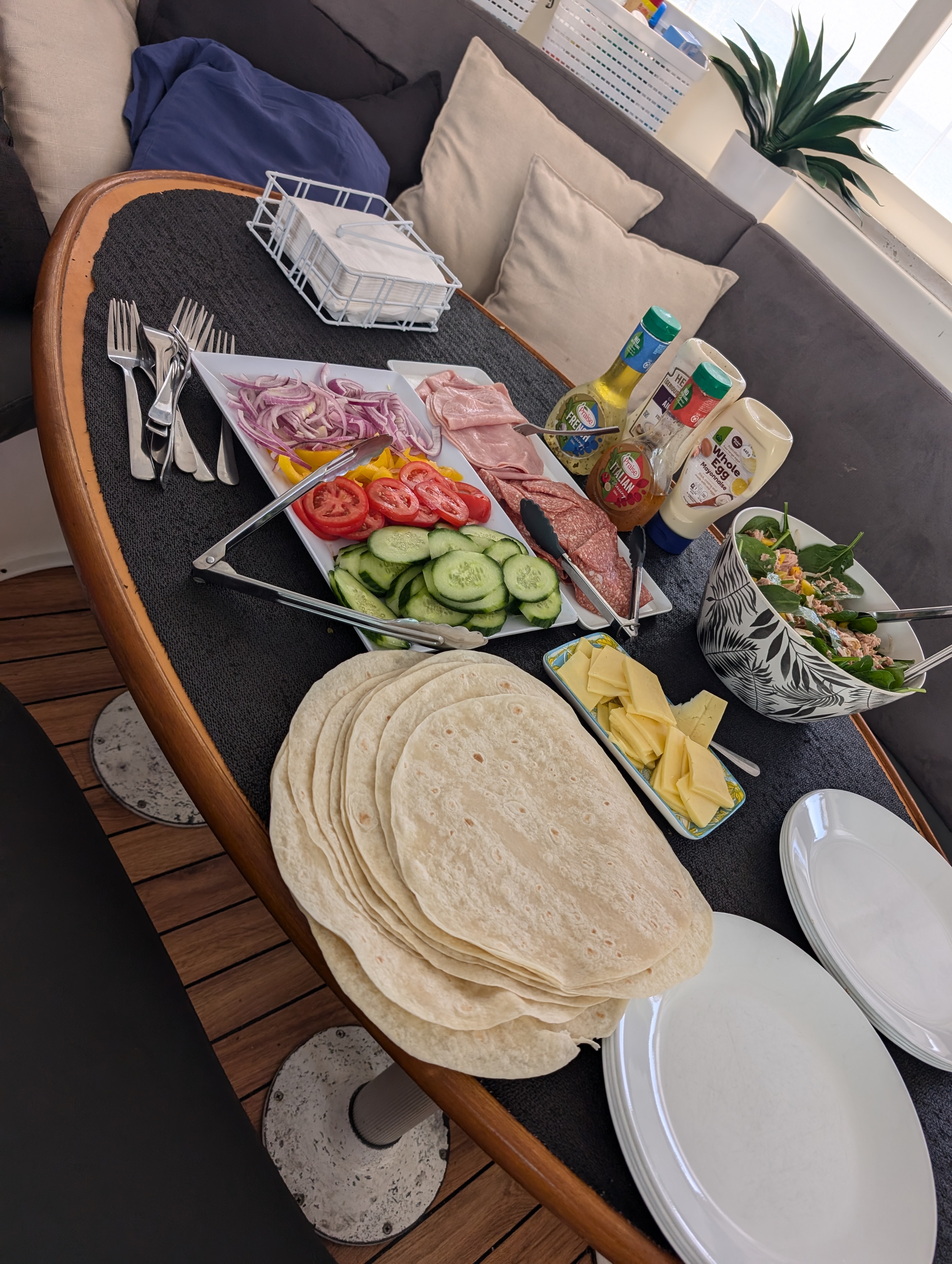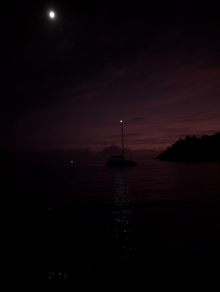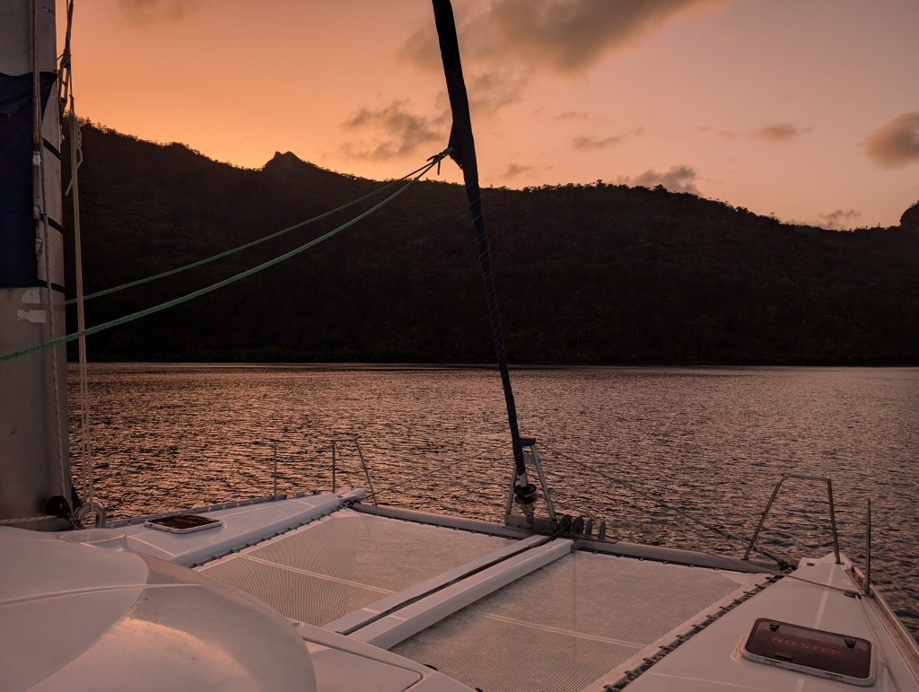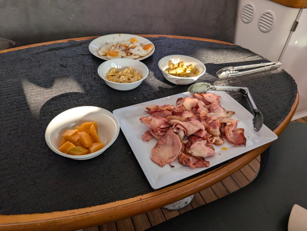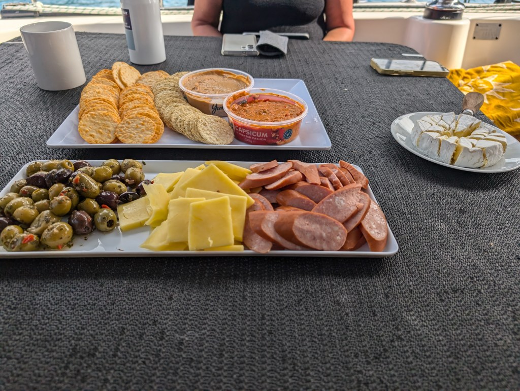 We sailed for a couple of hours and reached our overnight location. Jenna brought out a massive plate of nachos to snack on and we had drinks and got to know our boat mates.