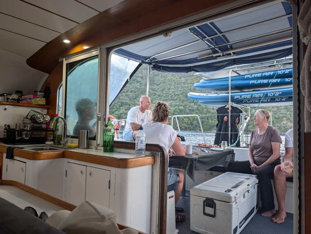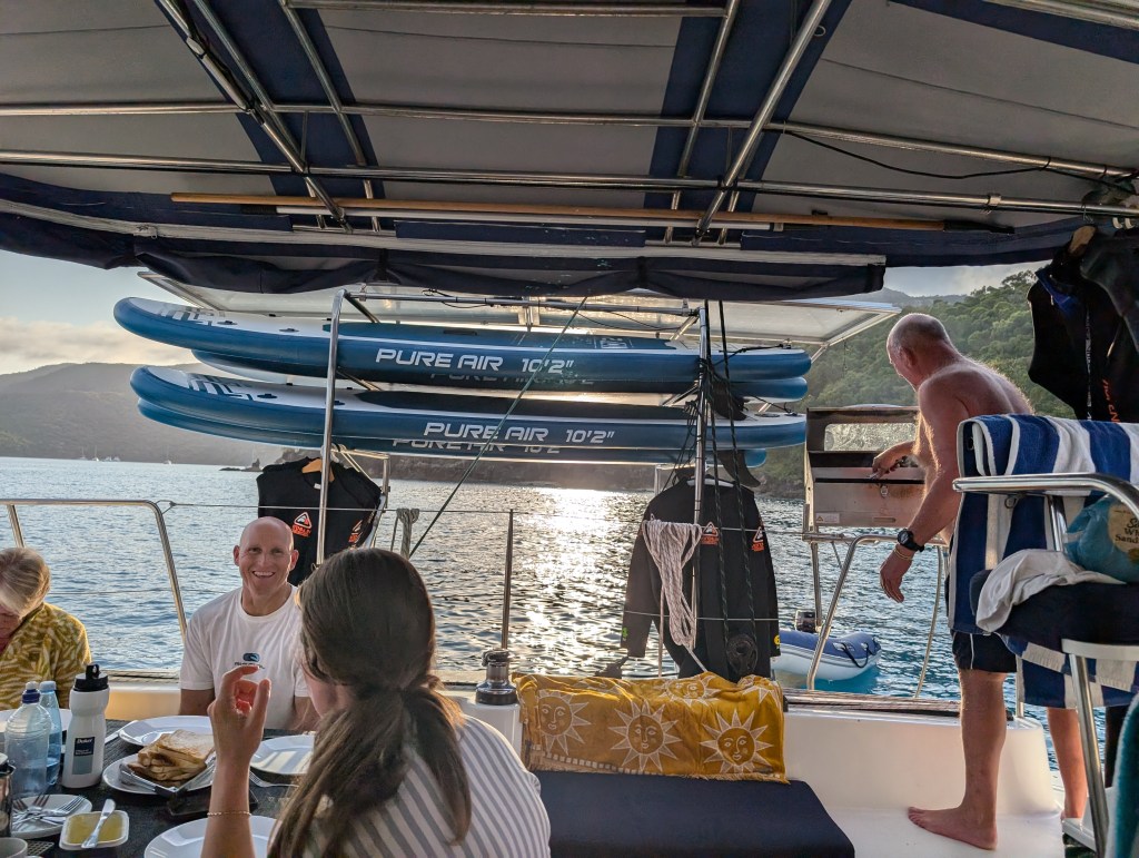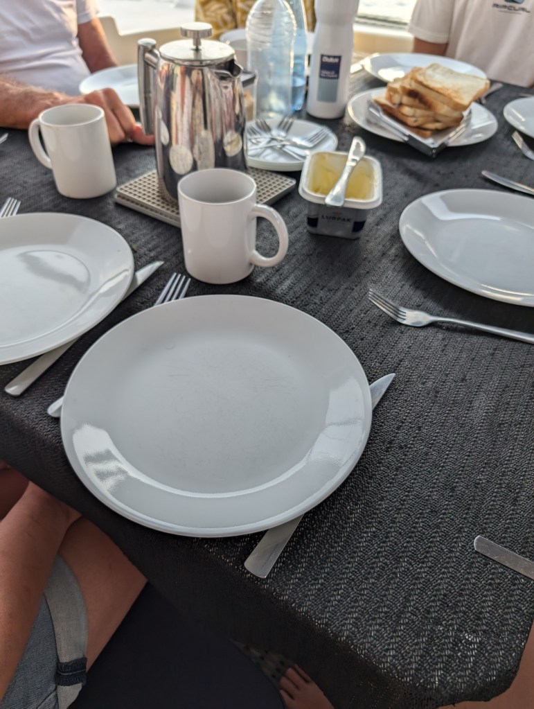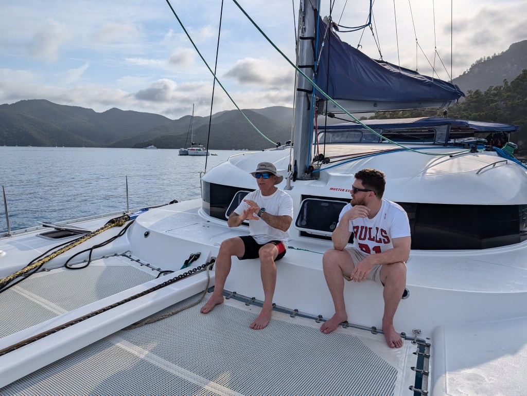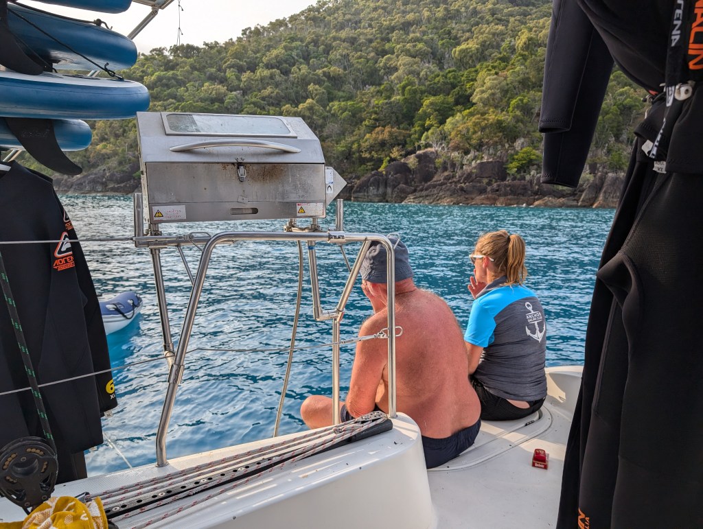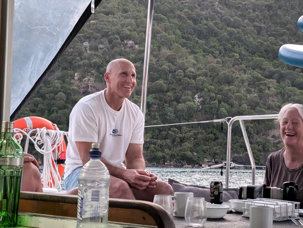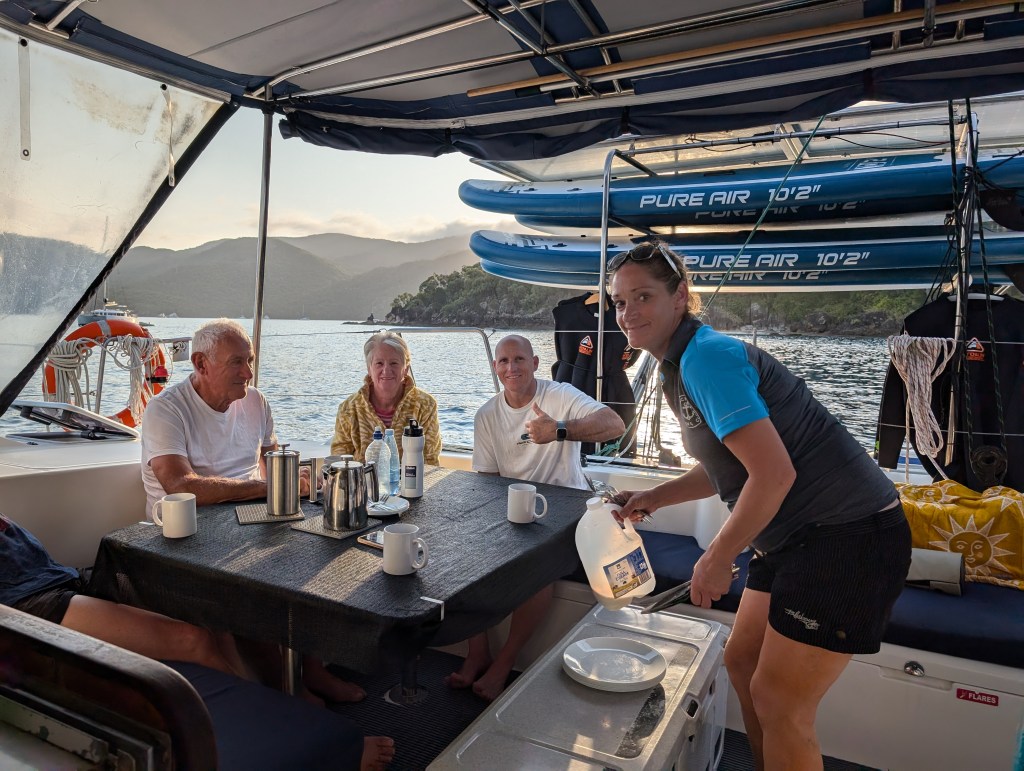 Back on the boat and time for morning snack – banana bread and coffee. And sadly time for the trek back to Airlie Beach.