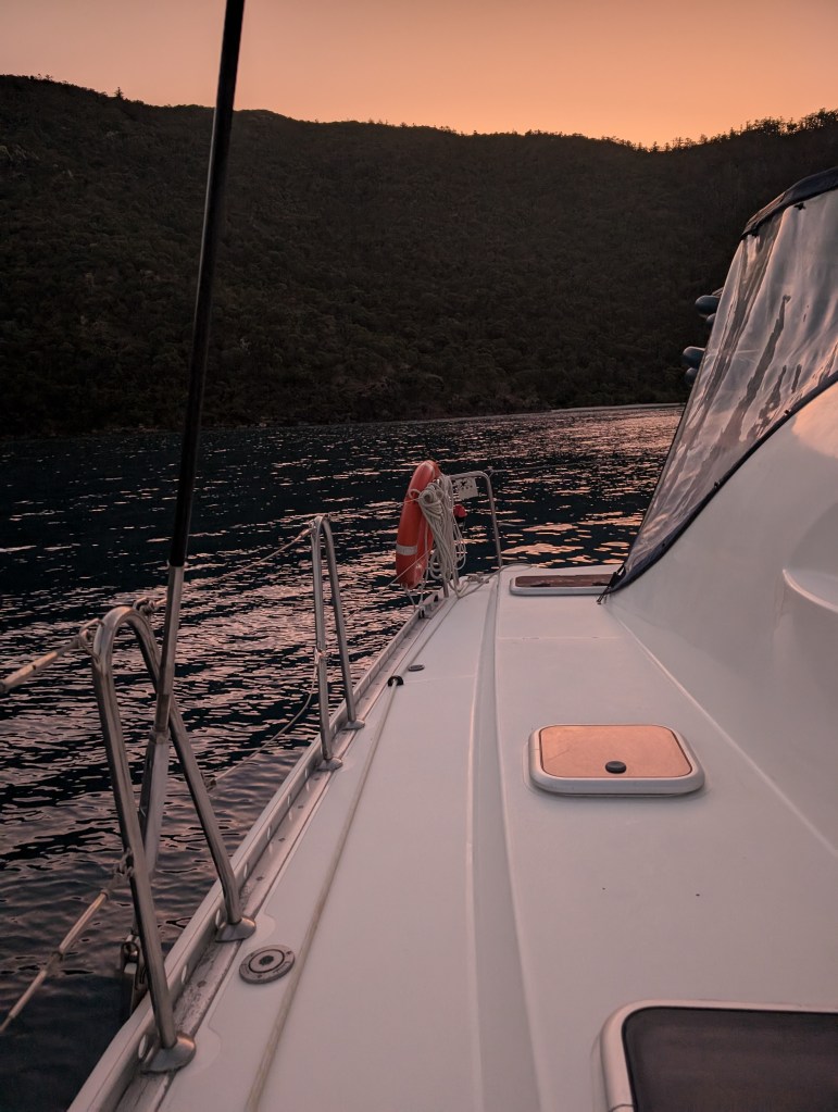 I got up alone earlier at 5am to watch the sunrise. It was still dark when I crept up to the deck with my blanket. The stars were out. It wasn’t as flat as the day before so there was some gentle banging of the boat. I watched as the sky changed colour and stars slowly disappeared and people started to rise and coffee was made.