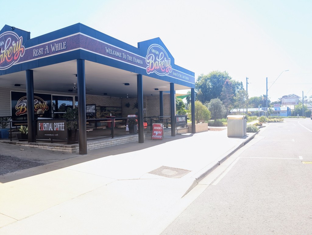 I said we are driving through I’ve heard about Gin Gin but it seems like things are closed. Yes, she said, we had a market this morning and for some reason the shops close after. No other suggestions seemed forth coming…
