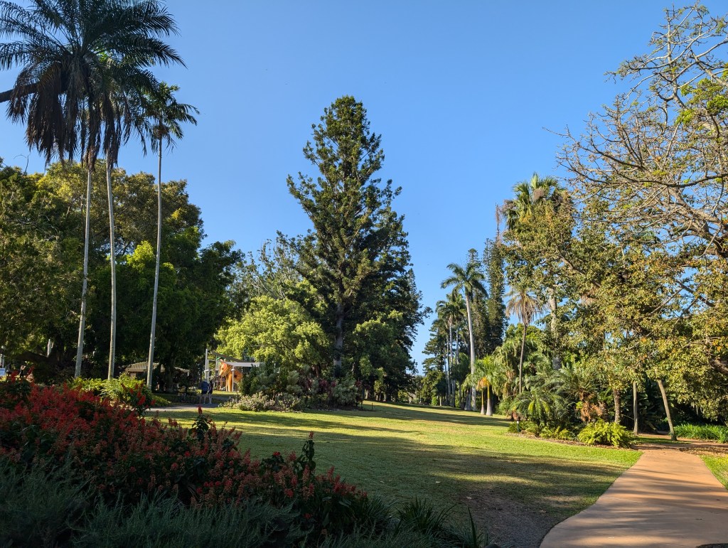Park run is at the Botanical Gardens so we thought let’s do it before we leave. We rocked up there a couple of minutes before 8 just in time to see everyone leaving the gardens all red and sweating. It started at 7. We did the course anyway but park runners will understand it is not the same as getting your time registered. It was a beautiful location though. We decided that for each town now we might try and find a nice park to run in.